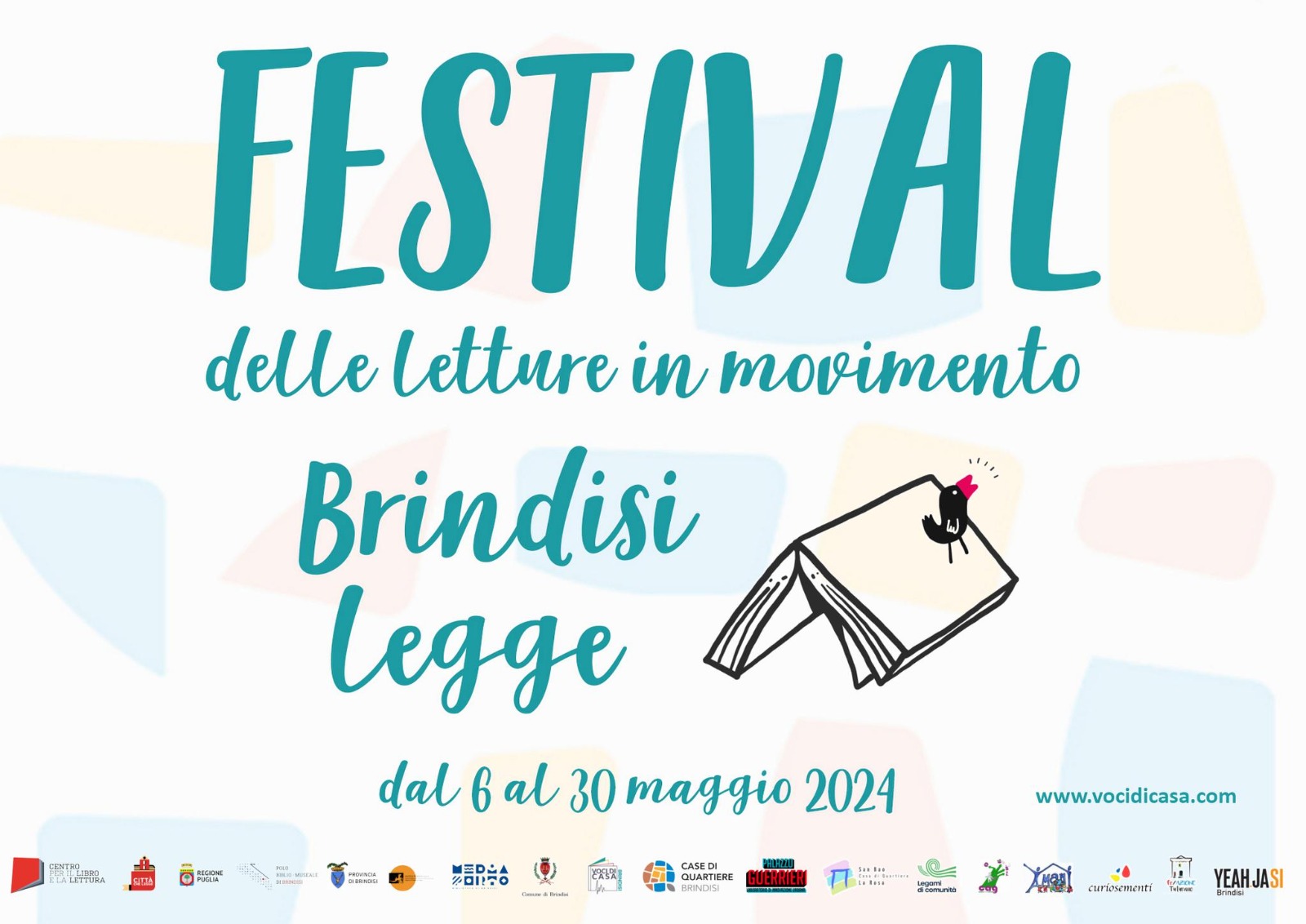 Dal 6 al 30 maggio, un Festival diffuso che ridisegna lโitinerario culturale di Brindisi intercettando molti tra i tanti luoghi dโinteresse della Cittร : la Biblioteca Sociale E. Cosma, il Parco giochi Angeli di Beslan, Parco Buschicchio, il Mediaporto, Parco Cerare Braico, il Corridoio Verde, Parco Maniglio, Parco del CAG Paradiso, Teatro dei Salesian, Palazzo Guerrireri, Casa San Bao, Casa della Musica.