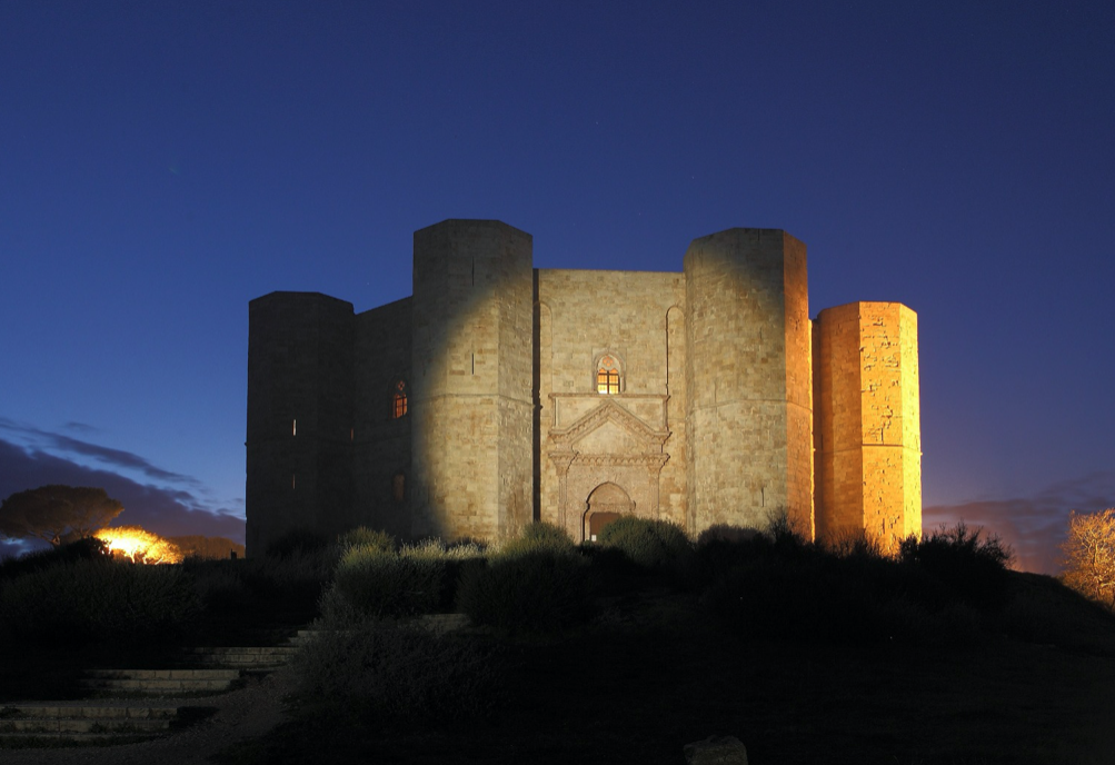 Qual è il castello più famoso che l’imperatore Federico II di Svevia fece costruire in Puglia? Ti do un indizio: si trova vicino Andria e sorge su una collina da cui si domina tutto il paesaggio attorno. Esatto, Castel del Monte! La perfezione e la magnificenza di questo castello sono tali che è stato inserito nella lista dei Beni Unesco, cioè di quei monumenti che sono patrimonio dell’umanità. Federico II ne ordinò la costruzione nel 1240; volle che il castello sorgesse su un’altura direttamente al di sopra del banco roccioso. A differenza di molti altri castelli pugliesi, non ha il fossato e questo ci fa capire che non aveva una funzione difensiva, ma residenziale. L’otto è un numero ricorrente nella sua architettura: ha la forma di un ottagono con otto torri agli angoli e sia al primo che al secondo piano ci sono otto stanze. Oggi sono vuote, ma con un po’ di fantasia possiamo immaginare come dovevano essere arredate un tempo e gli uomini e le donne che le hanno frequentate.